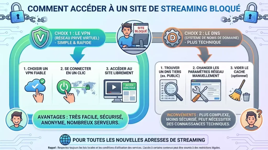 De nombreux utilisateurs choisissent aujourd’hui d’utiliser un VPN pour contourner les blocages et accéder au site plus simplement, sans restriction.